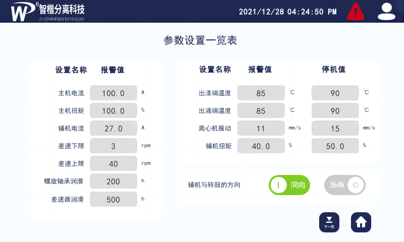 - 觀察設備運行參數,如各個電機,減速機運行情況,離心機軸承溫度,各減速機油位情況,并做好記錄;